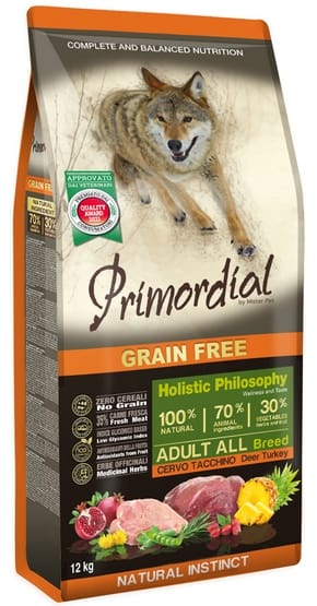Primordial to wyjątkowa karma dla psa jakości super premium, która doskonale odzwierciedla naturalne potrzeby Twojego pupila, wzbogacona o wysoką zawartość świeżego mięsa i starannie dobrane składniki. Dzięki unikalnemu połączeniu wysokiej zawartości świeżego mięsa z indyka oraz suszonego mięsa jelenia, Primordial zapewnia doskonałe odżywienie i wyjątkową smakowitość, pobudzając naturalne instynkty Twojego psa.