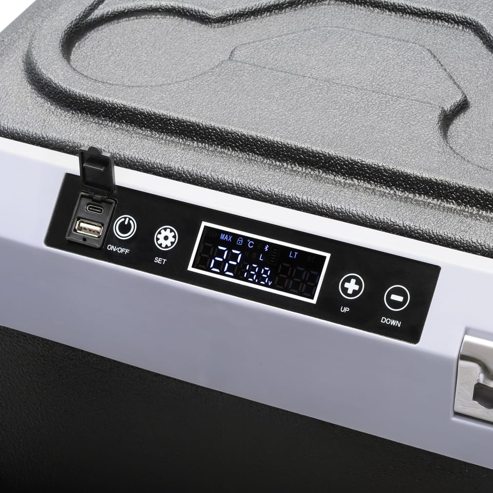 ----------GŁÓWNE CECHY----------Kompatybilna z aplikacją Smart LifeWyświetlacz LEDDotykowy panel sterowaniaAutomatyczna blokada panelu sterowania Tryb pracy EcoOchrona przed rozładowaniem akumulatora pojazduJedna komora chłodzącaOświetlenie LED wewnątrz komoryUchwyty na napoje na wierzchu pokrywyObustronne otwieranie pokrywyZdejmowana pokrywaWysuwany uchwyt i kółkaWbudowany otwieracz do butelekOtwór spustowyMożliwość zasilania baterią zewnętrzną (sprzedawana oddzielnie)----------DANE TECHNICZNE----------Pojemność: 40 lTyp: lodówka kompresorowaChłodzenie: +24°C ~ -22°CKlasa klimatyczna: 10°C ~ 43°C (SN/N/ST/T)Izolacja: C5H10 (Cyklopentan)Czynnik chłodniczy: R1234yf (25 g)Poziom emisji hałasu: 40 dBKlasa ochronności: IIŁączność: Bluetooth 5.0Zakres częstotliwości Bluetooth: 2,402-2,480 GHzMaks. moc wyjściowa Bluetooth: +10 dBmPorty: USB-A, USB-C (ładowanie urządzeń zewnętrznych)Napięcie ładowania: 5 V / 2,1 A (10 W)W zestawie: zasilacz sieciowy, przewód zasilający z gniazda zapalniczki samochodowej----------ZASILANIE----------Pobór mocy: 60 WZasilanie: DC 12/24 V | 4,2/2,1 AZasilacz sieciowy: • Wejście: 100 – 240 V; 50/60 Hz • Wyjście: 14,5 V / 6 A • Moc wyjściowa: 87 W • Średnia sprawność podczas pracy: 75% • Sprawność przy niskim obciążeniu (10%): 80% • Zużycie energii w stanie bez obciążenia: 60 W----------PARAMETRY FIZYCZNE----------Waga: 16,6 kg Wymiary produktu (długość x szerokość x wysokość): 680 x 445 x 435 mmWymiary komory (długość x szerokość x wysokość): 509 x 322 x 329 mmDługość przewodu zasilacza sieciowego: 243 cmDługość przewodu zasilania z gniazda zapalniczki samochodowej: 200 cm
