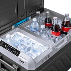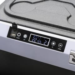 ----------GŁÓWNE CECHY----------Kompatybilna z aplikacją Smart LifeWyświetlacz LEDDotykowy panel sterowaniaAutomatyczna blokada panelu sterowania Tryb pracy EcoOchrona przed rozładowaniem akumulatora pojazduDwie komory chłodząceOświetlenie LED wewnątrz komoryUchwyty na napoje na wierzchu pokrywyObustronne otwieranie pokrywyZdejmowana pokrywaWysuwany uchwyt i kółkaWbudowany otwieracz do butelekOtwór spustowyMożliwość zasilania baterią zewnętrzną (sprzedawana oddzielnie)----------DANE TECHNICZNE----------Pojemność: 40 lTyp: lodówka kompresorowaChłodzenie: +20°C ~ -20°CKlasa klimatyczna: 10°C ~ 43°C (SN/N/ST/T)Izolacja: C5H10 (Cyklopentan)Czynnik chłodniczy: R1234yf (25 g)Poziom emisji hałasu: 40 dBKlasa ochronności: IIŁączność: Bluetooth 5.0Zakres częstotliwości Bluetooth: 2,402-2,480 GHzMaks. moc wyjściowa Bluetooth: +10 dBmPorty: USB-A, USB-C (ładowanie urządzeń zewnętrznych)Napięcie ładowania: 5 V / 2,1 A (10 W)W zestawie: zasilacz sieciowy, przewód zasilający z gniazda zapalniczki samochodowej----------ZASILANIE----------Pobór mocy: 65 WZasilanie: DC 12/24 V | 4,4/2,2 AZasilacz sieciowy: • Wejście: 100 – 240 V; 50/60 Hz • Wyjście: 14,5 V / 6 A • Moc wyjściowa: 87 W • Średnia sprawność podczas pracy: 75% • Sprawność przy niskim obciążeniu (10%): 80% • Zużycie energii w stanie bez obciążenia: 65 W----------PARAMETRY FIZYCZNE----------Waga: 22 kg Wymiary produktu (długość x szerokość x wysokość): 679 x 454 x 440 mmWymiary komór (długość x szerokość x wysokość): • Mała: 322 x 193 x 145 mm • Duża: 322 x 283 x 331 mmDługość przewodu zasilacza sieciowego: 243 cmDługość przewodu zasilania z gniazda zapalniczki samochodowej: 200 cm