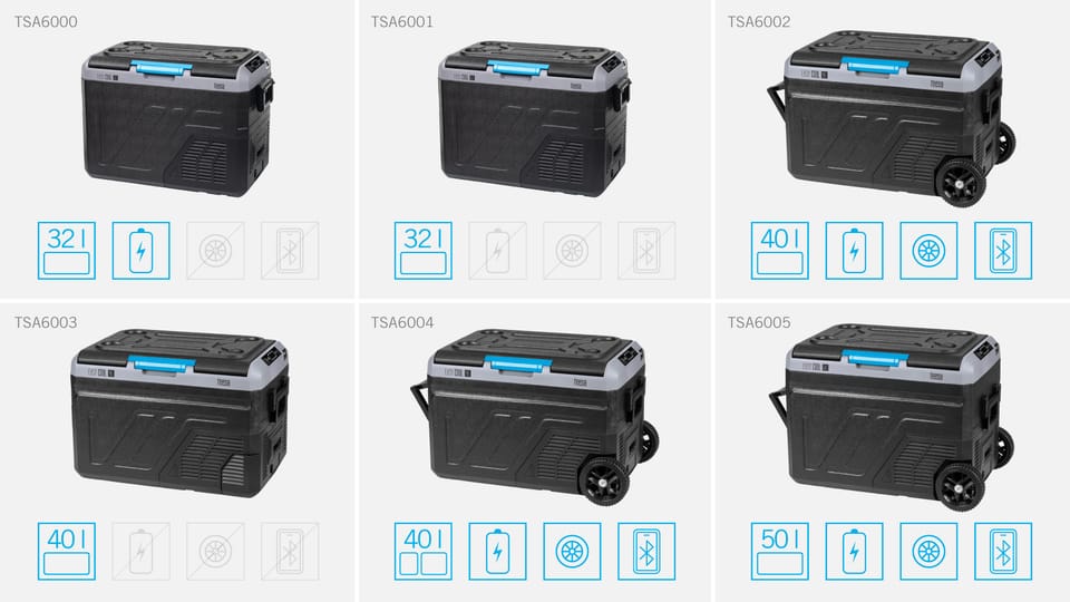 Profesjonalna lodówka turystyczna kompresorowa TEESA z funkcją mrożenia 40L DC12/24 AC 230V możliwość zasilania baterią , duże koła i solidna rączka , Bluetooth, dwie komory