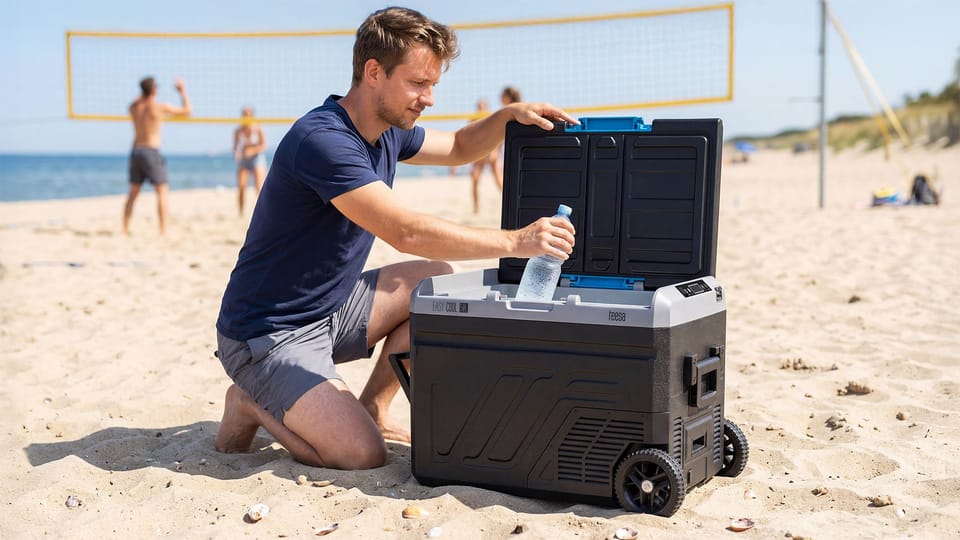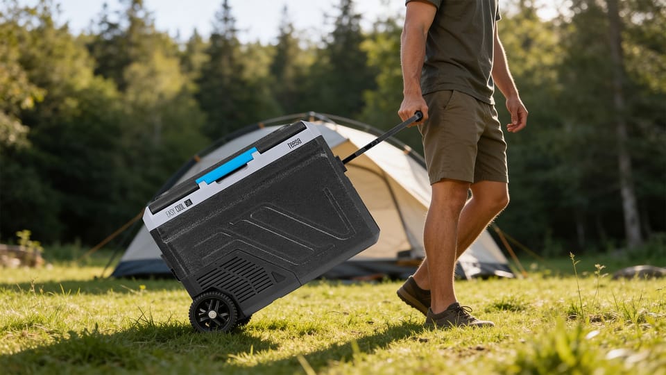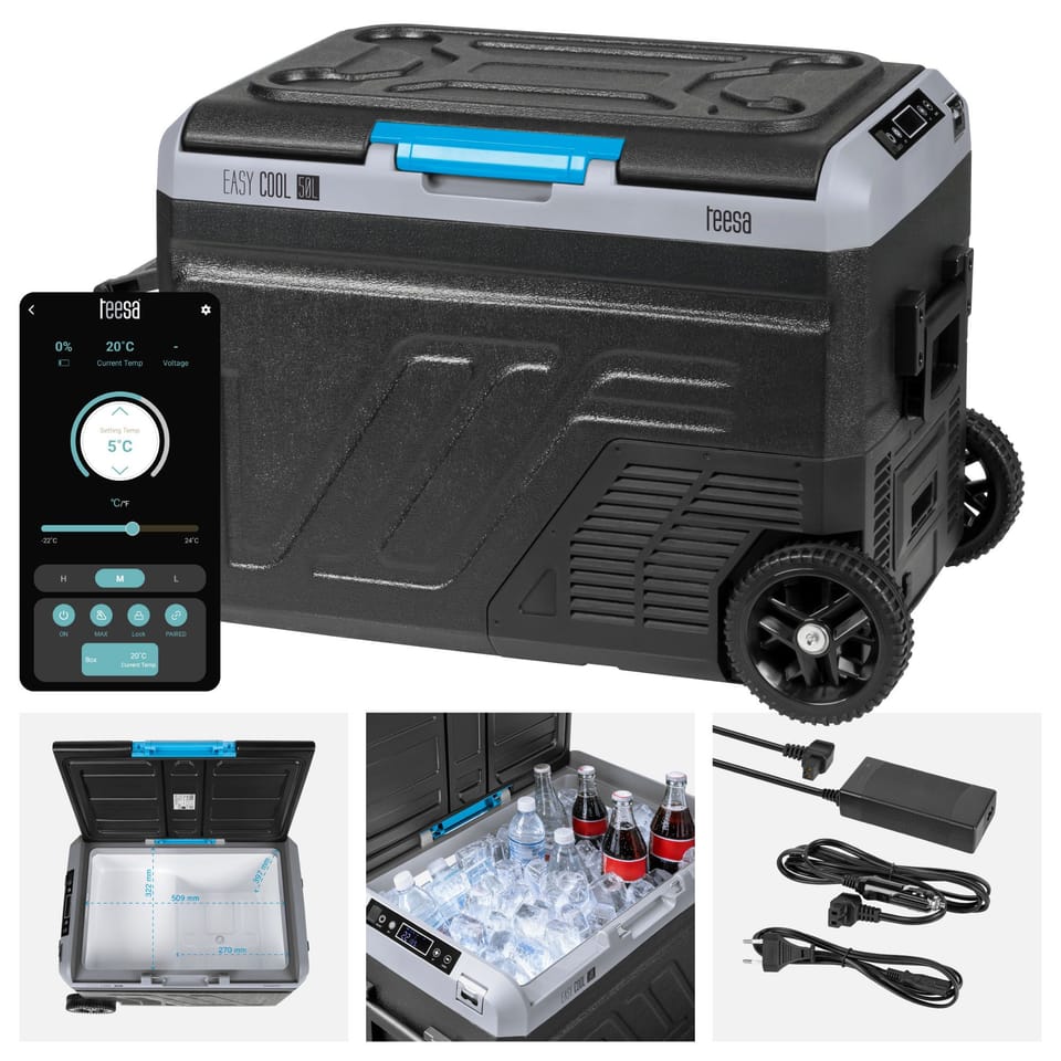 Profesjonalna lodówka turystyczna kompresorowa TEESA z funkcją mrożenia 50L DC12/24 AC 230V, duże koła i solidna rączka , Bluetooth, możliwość zasilania baterią