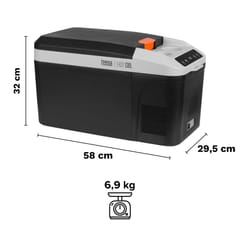 ----------GŁÓWNE CECHY----------Wyświetlacz LEDDotykowy panel sterowaniaTryb pracy EcoUchwyty na napojePasek do przenoszeniaOchrona przez rozładowaniem akumulatora pojazdu----------DANE TECHNICZNE----------Pojemność: 13 lTyp: lodówka kompresorowaChłodzenie: 20°C ~ -22°CKlasa klimatyczna: 16°C ~ 43°C (SN/N/ST/T)Izolacja: C5H10 (Cyklopentan)Czynnik chłodniczy: R600a (17 g)Poziom emisji hałasu: 52 dBKlasa ochronności: IIIPobór mocy: 35 W ±20%Zasilanie: DC 12/24 V | 3/1,5 AZasilacz sieciowy:• Wejście: 100 – 240 V; 50/60 Hz• Wyjście: 14,5 V / 4,1 ADługość przewodu zasilacza sieciowego: 207 cmDługość przewodu zasilania z gniazda zapalniczki samochodowej: 240 cmWaga: 6,9 kgWymiary produktu (długość x szerokość x wysokość): 58 x 29,5 x 32 cmWymiary komory (długość x szerokość x wysokość): 29,5 x 20 x 22 cmW zestawie: pasek, zasilacz sieciowy, przewód zasilający z gniazda zapalniczki samochodowej