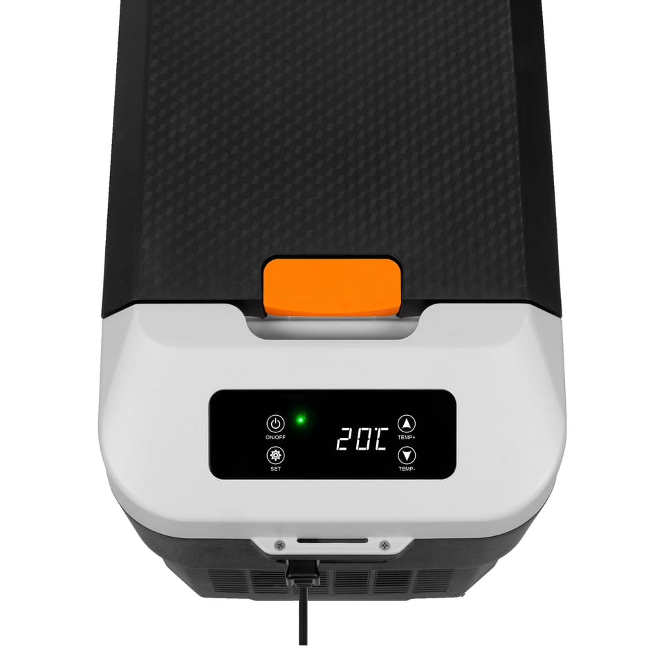 ----------GŁÓWNE CECHY----------Wyświetlacz LEDDotykowy panel sterowaniaTryb pracy EcoDwie komory chłodzącePasek do przenoszeniaOchrona przez rozładowaniem akumulatora pojazdu----------DANE TECHNICZNE----------Pojemność: 25 lTyp: lodówka kompresorowaChłodzenie: 20°C ~ -22°CKlasa klimatyczna: 16°C ~ 43°C (SN/N/ST/T)Izolacja: C5H10 (Cyklopentan)Czynnik chłodniczy: R600a (20 g)Poziom emisji hałasu: 52 dBKlasa ochronności: IIIPobór mocy: 45 W ±20%Zasilanie: DC 12/24 V | 3,75/1,87 AZasilacz sieciowy:• Wejście: 100 – 240 V; 50/60 Hz• Wyjście: 14,5 V / 4,1 ADługość przewodu zasilacza sieciowego: 207 cmDługość przewodu zasilania z gniazda zapalniczki samochodowej: 240 cmWaga: 10,3 kgWymiary produktu (długość x szerokość x wysokość): 67 x 31 x 42,5 cmWymiary komór (długość x szerokość x wysokość):• Mała: 22,3 x 6,4 x 9,5 cm• Duża: 35 x 22 x 30 cmW zestawie: pasek, zasilacz sieciowy, przewód zasilający z gniazda zapalniczki samochodowej