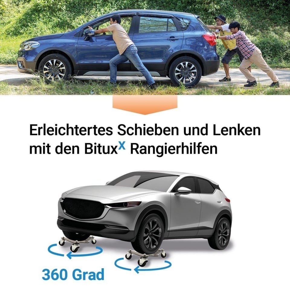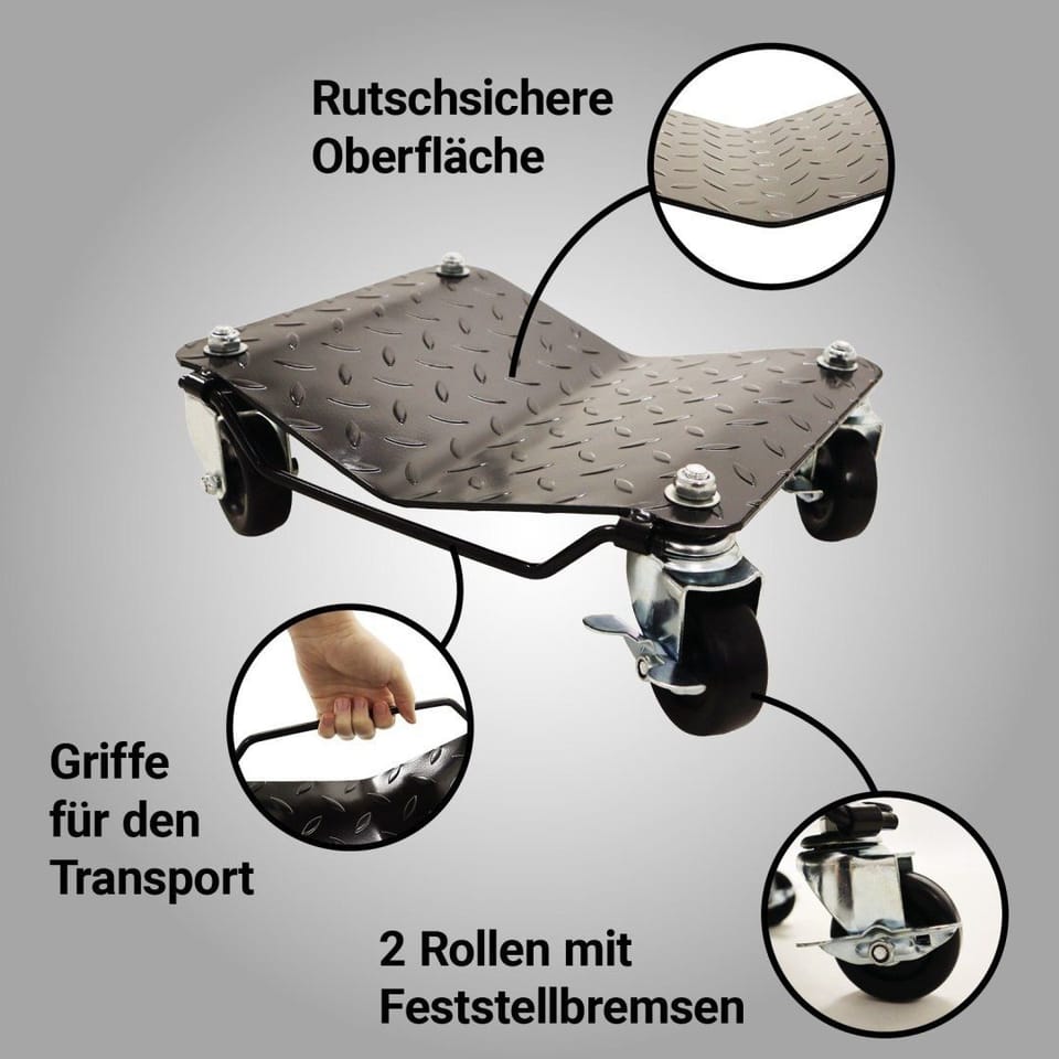 Ułatw sobie manewrowanie samochodem nawet na bardzo ograniczonej przestrzeni.Zestaw 2 profesjonalnych wózków manewrowych umożliwia precyzyjne przesuwanie pojazdu w dowolnym kierunku - bez wysiłku i ryzyka.