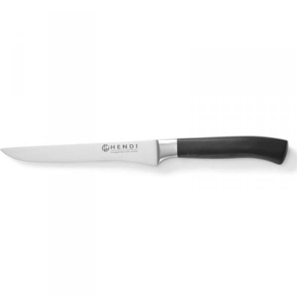 Numer producenta: HENDI 844267Nóż do filetowania - giętki z serii Profi Line marki Hendi.Cechy produktu:- wykonany z wysokiej jakości niemieckiej stali węglowej- specjalny stop stali chirurgicznej chromowo - molibdenowo - wanadowej X50CrMoV15 gwarantuje: doskonałe właściwości tnące, bardzo ostre i trwałe ostrze, łatwe ostrzenie, odporność na zabrudzenia- higieniczna zgodna z HACCP konstrukcja rękojeści uniemożliwia gromadzenie się resztek w miejscach łączeń- proces produkcyjny noży składa się z 50 etapów- nóż posiada idealną krawędź tnącą- kuty na gorąco z jednego kawałka stali- każdy nóż jest w osobnym estetycznym blistrze- można myć w zmywarkach- rączka z tworzywa POMParametry:- długość ostrza: 150mm- długość noża: 270mm- grubość: 2mmW zestawie:- nóż do filetowania - giętki- instrukcja PL...