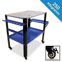 Ten stół spawalniczy z mobilnym systemem jezdnym został zaprojektowany, aby zapewnić stabilną i ergonomicznie dostosowaną powierzchnię roboczą, którą można łatwo przemieszczać w zależności od potrzeb stanowiska. Dzięki nośności do 250 kg, konstrukcja stołu radzi sobie z ciężkimi elementami metalowymi, narzędziami oraz materiałami przygotowanymi do obróbki.