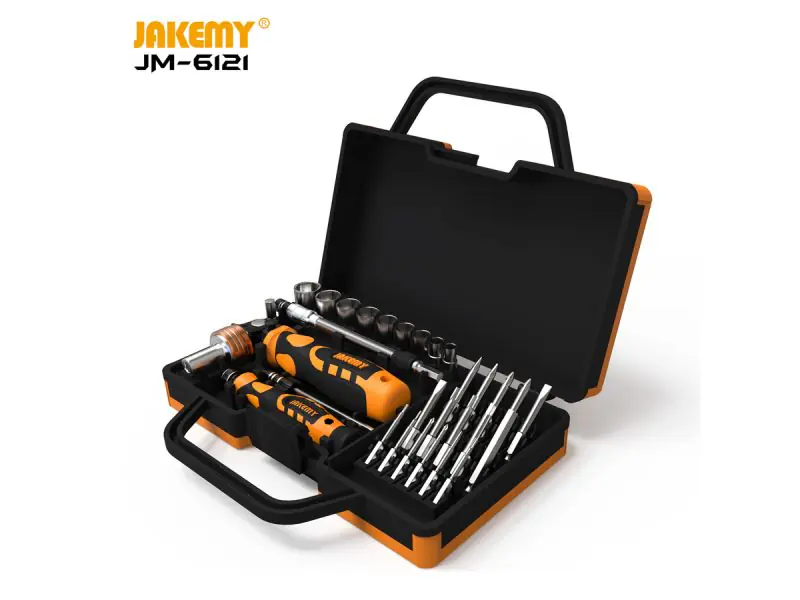 Naprawa nowoczesnych urządzeń elektronicznych wymaga nie tylko umiejętności, ale również wykorzystania odpowiedniego, precyzyjnego sprzętu. Producenci stosują różnego rodzaju zabezpieczenia, co sprawia, że do ich otwarcia wymagane są dodatkowe końcówki, które trudno znaleźć w podstawowych zestawach wkrętaków. Nasz zestaw zawiera aż 16 różnych końcówek (bitów) oraz 9 nasadek. Każda z nich posiada swoje własne miejsce, co pozwala na zachowanie porządku oraz sprawną organizację miejsca pracy, a tym samym jej szybkie i dokładne wykonanie. Komplet przeznaczony jest zarówno do napraw telefonów, tabletów jak również wszystkich innych urządzeń i sprzętów, które posiadają niestandardowe, drobne śruby.Zestaw serwisowy znajdzie szerokie zastosowanie i może być z powodzeniem wykorzystywany w naprawach jubilerskich oraz zegarmistrzowskich, jak też przy naprawie sprzętu elektronicznego bądź optycznego. Doskonale się sprawdzi także podczas drobnych naprawach domowych, które wymagają wkrętaków.