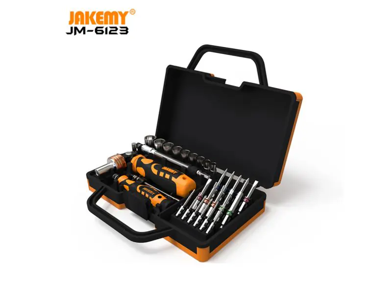 Naprawa nowoczesnych urządzeń elektronicznych wymaga nie tylko umiejętności, ale również wykorzystania odpowiedniego, precyzyjnego sprzętu. Producenci stosują różnego rodzaju zabezpieczenia, co sprawia, że do ich otwarcia wymagane są dodatkowe końcówki, które trudno znaleźć w podstawowych zestawach wkrętaków. Nasz zestaw zawiera aż 16 różnych końcówek (bitów) oraz 9 nasadek. Każda z nich posiada swoje własne miejsce, co pozwala na zachowanie porządku oraz sprawną organizację miejsca pracy, a tym samym jej szybkie i dokładne wykonanie. Komplet przeznaczony jest zarówno do napraw telefonów, tabletów jak również wszystkich innych urządzeń i sprzętów, które posiadają niestandardowe, drobne śruby.Zestaw serwisowy znajdzie szerokie zastosowanie i może być z powodzeniem wykorzystywany w naprawach jubilerskich oraz zegarmistrzowskich, jak też przy naprawie sprzętu elektronicznego bądź optycznego. Doskonale się sprawdzi także podczas drobnych naprawach domowych, które wymagają wkrętaków.