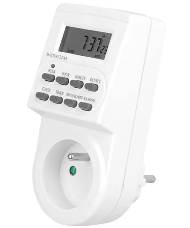 Wysokiej jakości programator, przeznaczony do automatycznego włączania i wyłączania podłączonych do niego urządzeń, wyposażony we wtyk typu E.