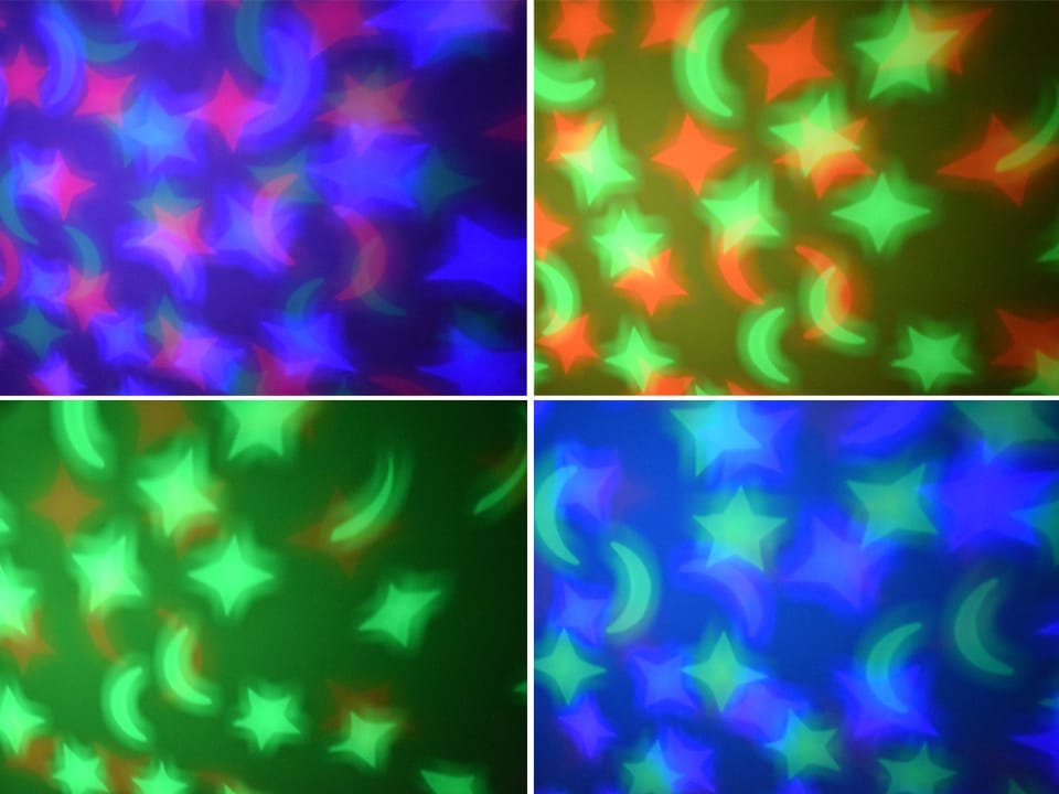 Podczas odtwarzania melodii lub dźwięków projektor wyświetla na suficie i ścianach kolorowe gwiazdki i księżyce w barwach czerwonej, zielonej i niebieskiej. Efekt jest szczególnie piękny w zaciemnionym pokoju, tworząc przyjazną i spokojną atmosferę sprzyjającą zasypianiu.