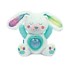 🎵 Dźwięki uspokajające maluchaKróliczek odtwarza szumy białe oraz specjalnie opracowane melodie, które wspierają wyciszenie, relaks i naukę samodzielnego zasypiania.