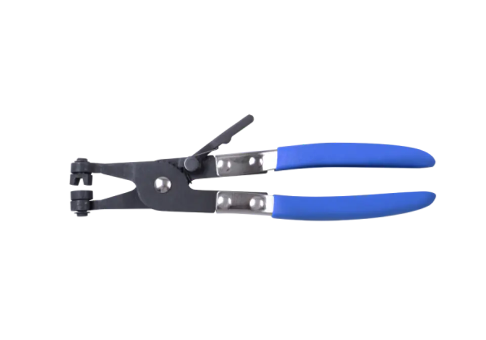 Szczypce do zakładania i zdejmowania zacisków sprężynowych. Obrotowa wklęsła szczęki ułatwiają trzymanie zacisku we właściwym położeniu. Do silników aut: VW, Audi, Opel, Honda, Ford. Długość 220 mm, średnica do 12,7 mm Karta produktu - 9AA16
