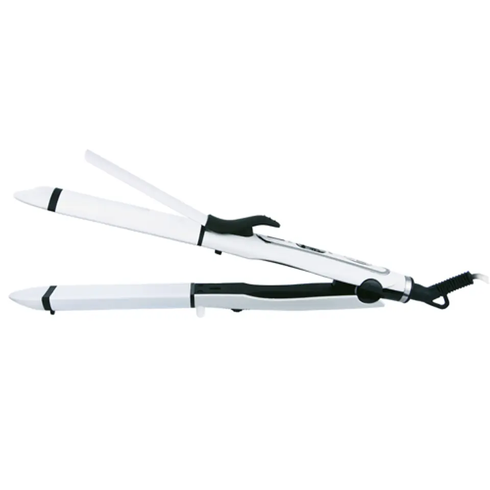 Prostownica z płytkami aluminiowymi z powłoką ceramiczną o mocy 50W. Skutecznie prostuje odstające i kręcące się kosmyki włosów. Dobry wybór dla osób, którym zależy na gładkiej fryzurze, której nie trzeba ciągle poprawiać. Dzięki powłoce ceramicznej włosy niszczą się znacznie mniej niż w przypadku prostownic całkowicie metalowych. Prostownica jest lekka i wygodna w użytkowaniu. Posiada obrotowy kabel, który nie zawija się podczas przygotowywania fryzury. Dodatkowo prostownica może zostać wykorzystana do kręcenia włosów, co zwiększa jej funkcjonalność.