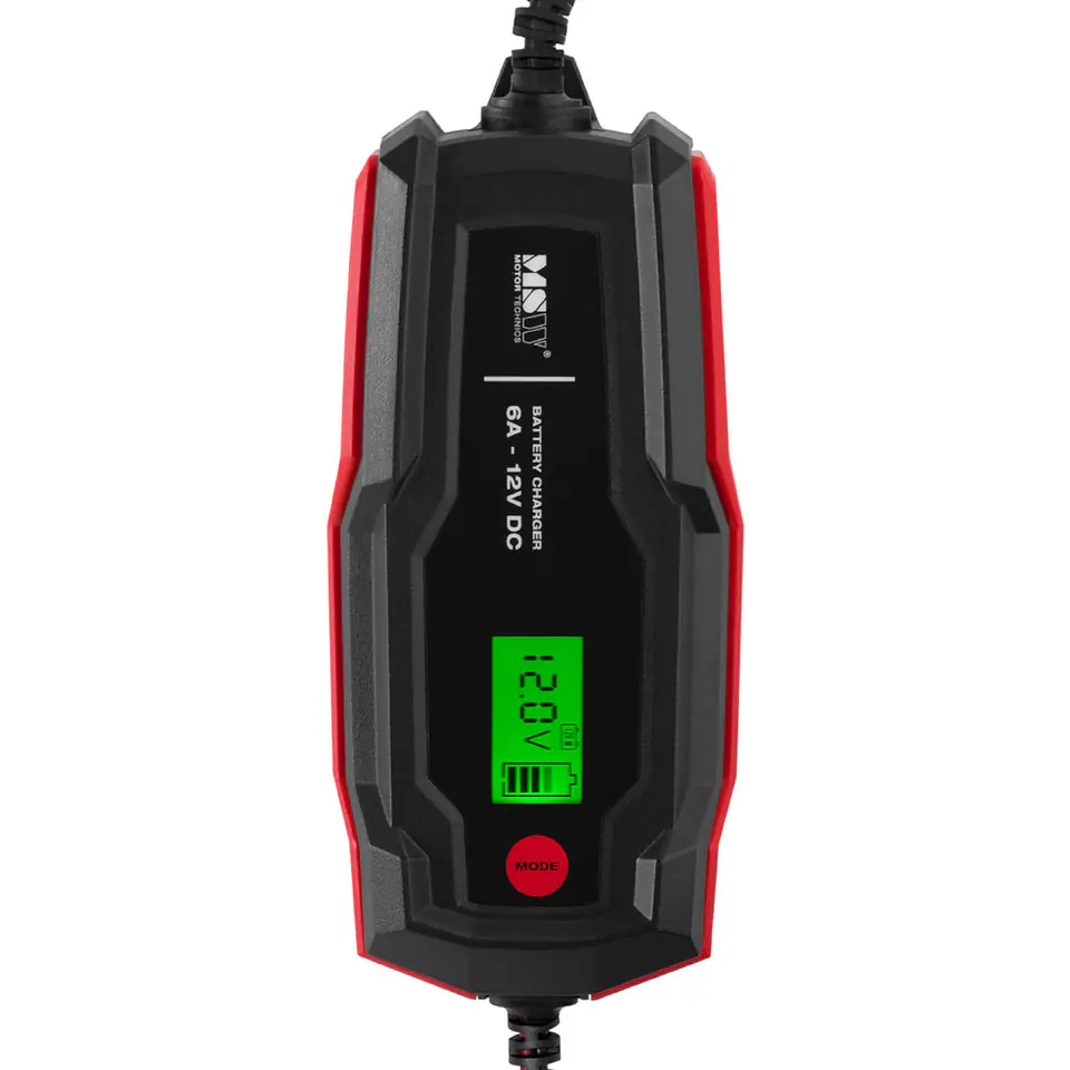 Prostownik samochodowy wytwarza potężny prąd ładowania 6 A, który niezawodnie ładuje baterię 12 V. Przeznaczony jest do akumulatorów o pojemności 3-150 Ah. Urządzenie analizuje rodzaj i stan podłączonego ogniwa i automatycznie uruchamia optymalny tryb ładowania. Sterownik mikroprocesorowy niezależnie monitoruje 10 stopniowy cykl do zakończenia ładowania. Prostownik posiada dużą wydajność, ładuje nawet w pełni rozładowane akumulatory. Po zakończeniu procesu urządzenie automatycznie przechodzi w tryb uśpienia. Panel sterowania oraz wyświetlacz LED pozwalają na łatwy odczyt informacji. Urządzenie wyposażono w zabezpieczenia przeciwzwarciowe, nadprądowe, przed odwrotną polaryzacją oraz pracę beziskrową.