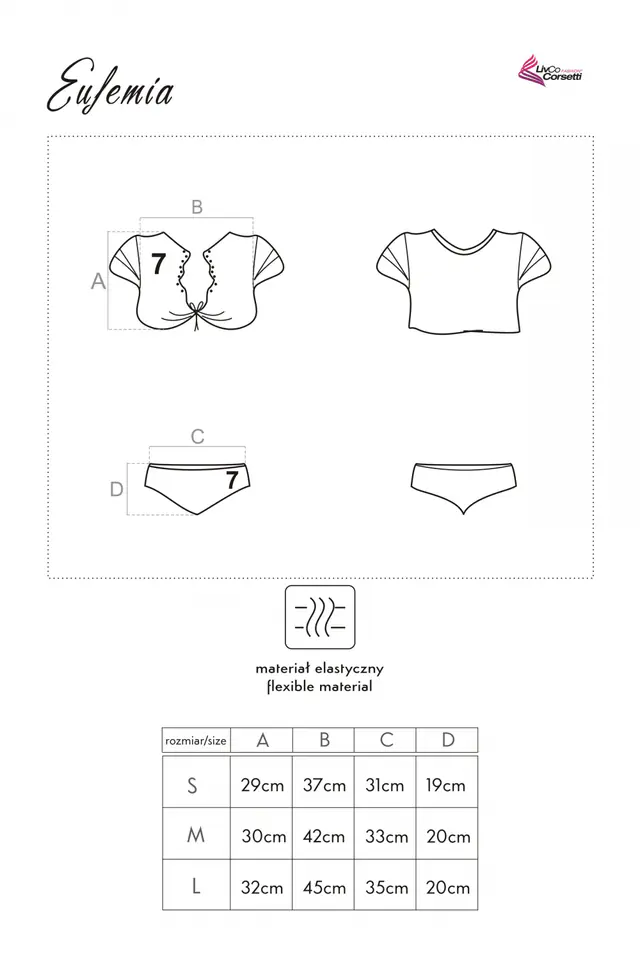 Dziewczyna z drużyny to marzenie i fantazja każdego mężczyzny. Ze strojem Eufemia zapanujesz nad męskim pożądaniem. W zniewalającym komplecie mięciutka koszulka i spodenki w kobiecej kolorystyce i kuszącym kroju. Koszulka w stylu topu, na krótkie rękaw z numerem 7 i niebieskimi ozdobnymi paskami. Wiązana pod biustem na sznureczki. Wspaniale uwydatnia piersi, a między nimi kokieteryjnie falowane wycięcie i malutkie napy w kolorze starego złota. Króciutkie sportowe szorty w kolorystyce koszulki, doskonale podkreślają pośladki, do noszenia na wysokości bioder. Seksowny kostium do polecenia z trampkami i podkolanówkami oraz czapką bejsbolową.