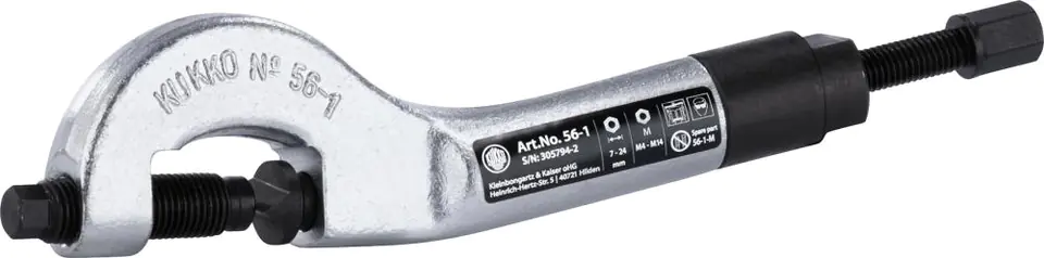 Wykonanie: ulepszona stal specjalna, z sześciokątną nakrętką do wciskania hartowanego kła przecinaka, oraz podtrzymka powierzchni klucza i wrzeciona dociskowego.