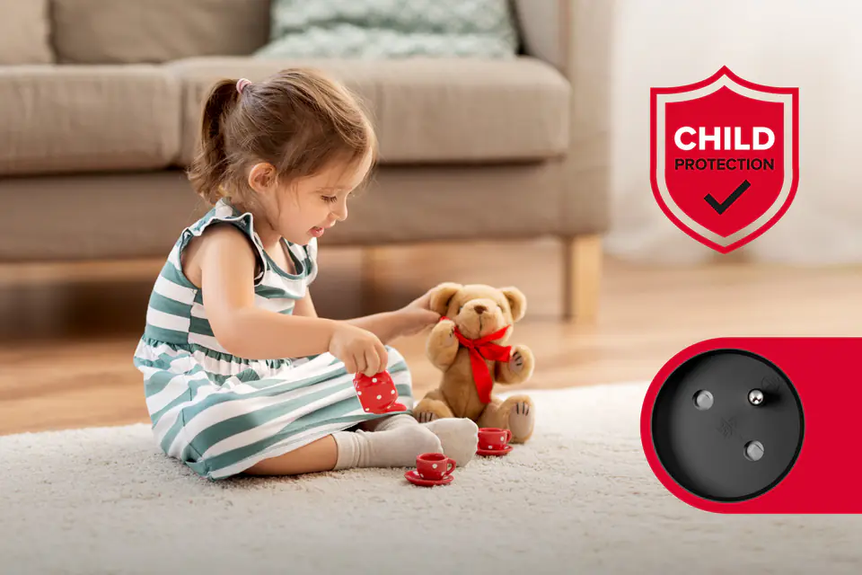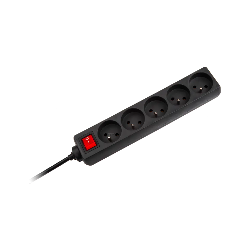 Przedłużacz 5 gniazd 5m typu francuskiego z przełącznikiem 3x1.5mm) Rebel czarn