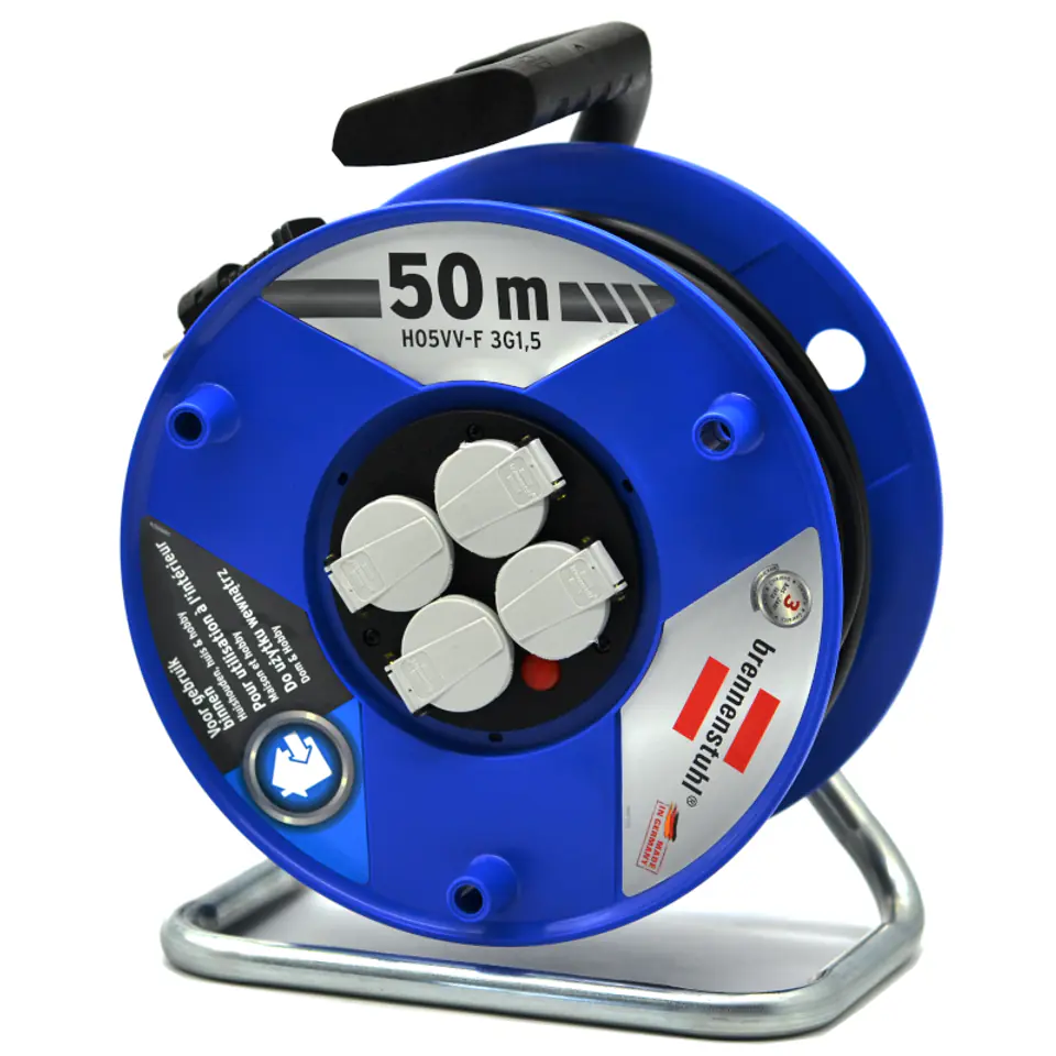 Bęben kablowy Garant z kablem o długości 50 m w kolorze niebieskim firmy Brennenstuhl przekonuje swoją jakością i bezpieczeństwem we wszystkich obszarach. Jest idealny do użytku wewnętrznego. Ponadto przekonuje następującymi cechami:
