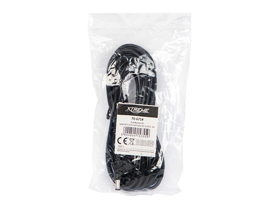 Praktyczny przedłużacz zasilania DC o długości 5 metrów, przeznaczony do urządzeń z popularnym złączem DC 2,1/5,5 mm. Idealny do instalacji kamer monitoringu, rejestratorów, oświetlenia LED oraz innych urządzeń zasilanych napięciem 12V.