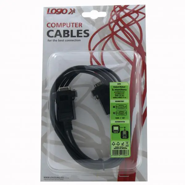 Przedłużacz do kabli video VGA (D-Sub) (M) - VGA (D-sub) F), 2 m, szary, Logo blister, EO