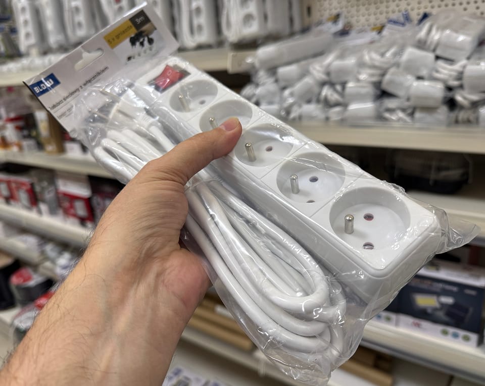 Przedłużacz sieciowy BLOW w kolorze białym z pięcioma gniazdami przeznaczony do użytku domowego. Przedłużacz pozwala podłączyć urządzenia, które są oddalone od gniazda elektrycznego. Produkt z jednej strony posiada 5 gniazd które są obrócone pod kątem oraz włącznik, a z drugiej pojedynczy kątowy wtyk sieciowy.