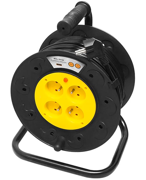 Solidny przedłużacz bębnowy marki BLOW z czterema gniazdami przeznaczony do użytku domowego. Niezwykle przydatny i niezastąpiony gdy chcemy podłączyć urządzenia elektryczne np. kosiarkę, wiertarkę, odkurzacz samochodowy lub lampę ogrodową. Przedłużacz wyróżnia się solidnym i mocnym metalowym stelażem oraz obudową z tworzywa sztucznego.