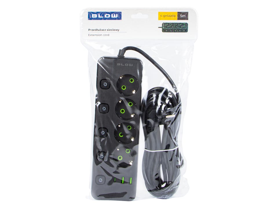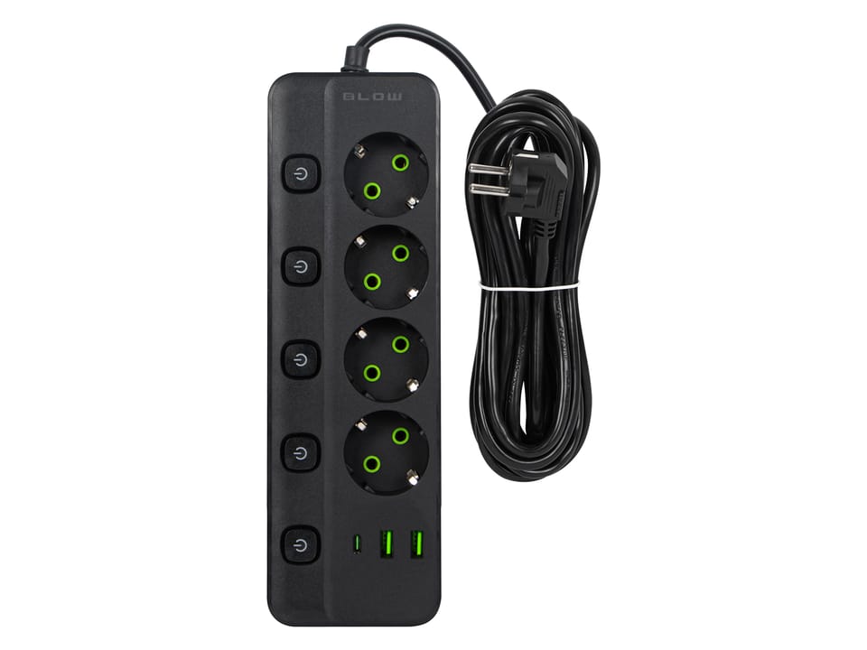 Przedłużacz sieciowy PS-450M 4-Gniazda 2xUSB+USB-C 5m czarny 3x1mm