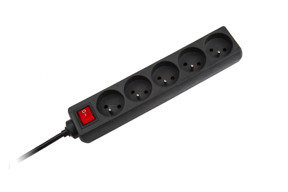 Przedłużacz sieciowy Rebel czarny 5 gniazd z przełącznikiem, dł. 1.5m
