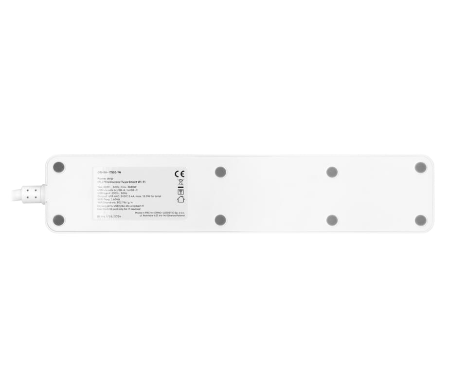 Przedłużacz z 3 gniazdami z uziemieniem i wyłącznikiem 2xUSB, Tuya Smart Wi-Fi, biały