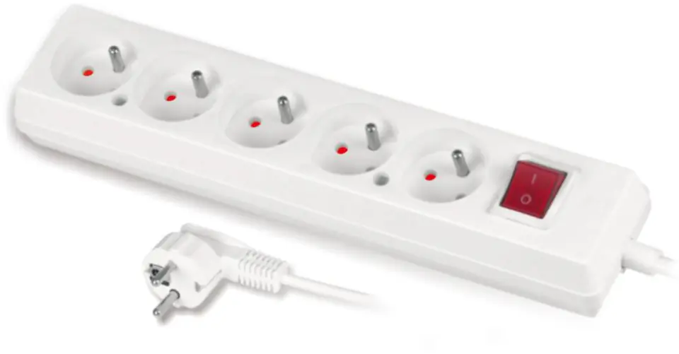 Przedłużacz z pięciokrotnym gniazdem z wyłącznikiem 3x2p+Z 10A 3m biały