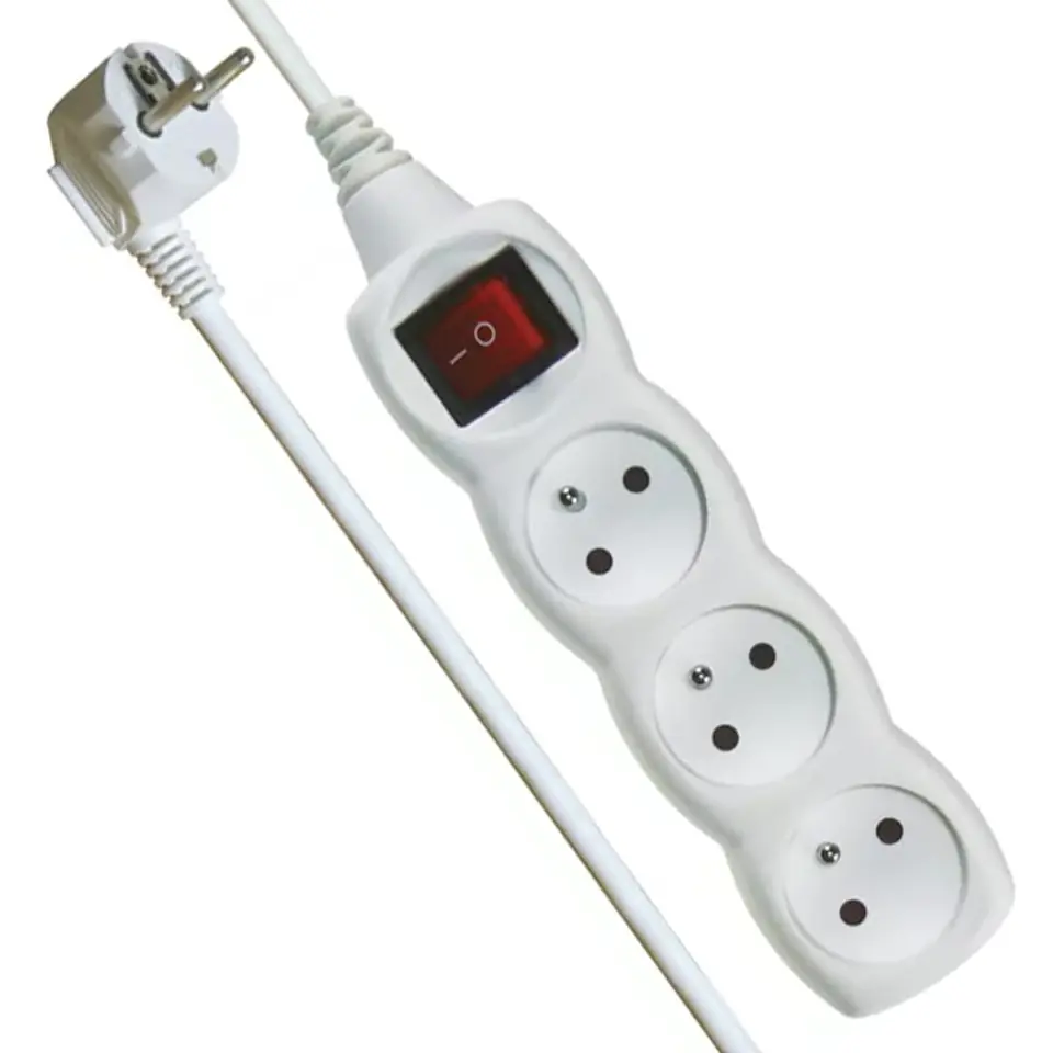 Listwa z wyłącznikiem Emos E13115. 3 gniazdka, długość kabla 1,5m. Maksymalne obciążenie 2300W.