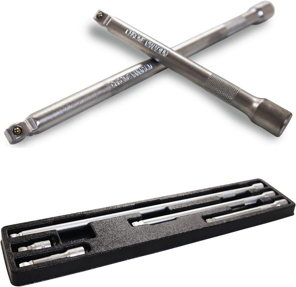 Dzięki wysokiej jakości zestawowi przedłużek nasadowych BITUXX z łatwością i bezpiecznie dotrzesz do trudno dostępnych miejsc przy śrubach. Wykonane ze stali chromowo-wanadowej (CrV), przedłużki są wyjątkowo wytrzymałe, odporne na uderzenia i doskonale nadają się zarówno do użytku profesjonalnego, jak i domowego.