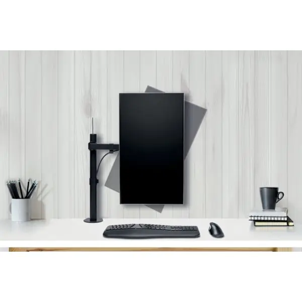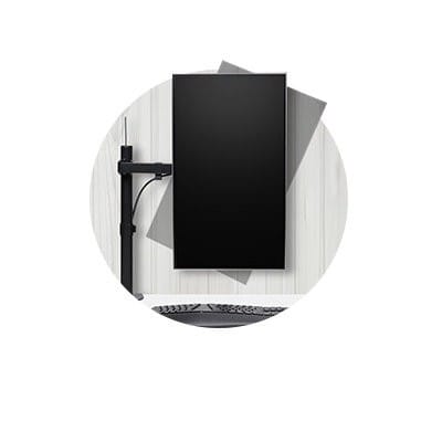 Zapewnia obrót o 90°, obrót o 180° (w orientacji poziomej lub pionowej) oraz regulację nachylenia monitora o 45°, co zapewnia ergonomiczny komfort.