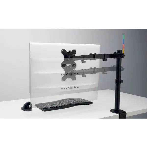 Trwała konstrukcja ze stali i aluminium wymaga mniej miejsca na biurku do zamocowania, jest łatwa w instalacji i nie uszkodzi ani nie pozostawi śladów na biurku ani stole.