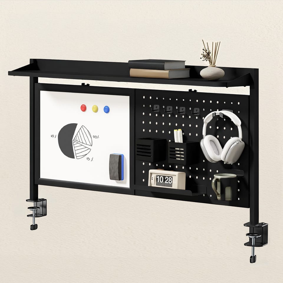 Wielofunkcyjna nadstawka biurkowa ER-301 to kompaktowe i niezwykle praktyczne rozwiązanie dla osób, które chcą uporządkować swoją przestrzeń roboczą i mieć wszystkie niezbędne akcesoria w zasięgu ręki. Konstrukcja mocowana do blatu za pomocą solidnych, metalowych zacisków zapewnia stabilność bez konieczności wiercenia. Wąska górna półka biegnąca przez całą szerokość nadstawki idealnie nadaje się na drobne przedmioty, np. notatki, dekoracje lub organizer biurowy.