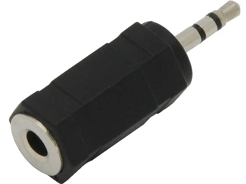 Przejście z wtykiem Jack 2,5 oraz gniazdem Jack 3,5 Stereo z obudową z plastiku.