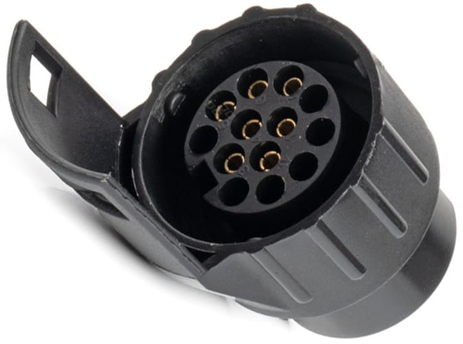Wtyczka 13 pinowa umożliwia standardowe połączenie elektryczne między samochodem osobowym lub busem z przyczepami transportowymi. Wtyczka jest na wyposażeniu elektrycznym przyczepy i łączy się ją z gniazdem przy haku holowniczym pojazdu. Połączenie na 13 styków umożliwia standardowe zasilenie oświetlenia przyczep lekkich i ciężkich, jedno i dwuosiowych, lawet oraz kampingowych - zasilanych napięciem samochodowym 12 Voltów. W przypadku niedopasowanie liczby styków pomiędzy autem holującym, a przyczepą należy skorzystać ze specjalnego adaptera umożliwiającego konwersję z 7 na 13 styków.