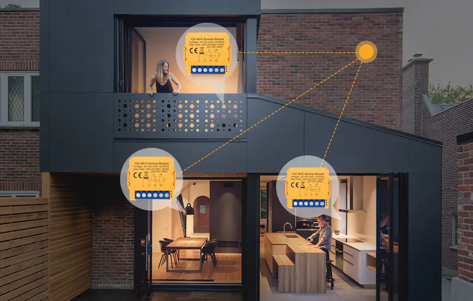 Mimo swojego niewielkiego rozmiaru (39 x 39 x 19.4 mm), przełącznik oferuje ogromne możliwości. Dzięki niemu możesz zdalnie kontrolować oświetlenie w swoim domu, bez względu na to, gdzie się znajdujesz. Jego instalacja jest prosta i nie wymaga specjalistycznych umiejętności. Połącz go z siecią WiFi i ciesz się inteligentnym oświetleniem.
