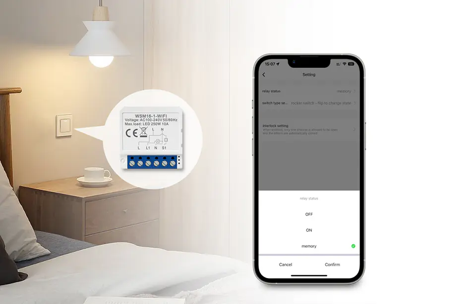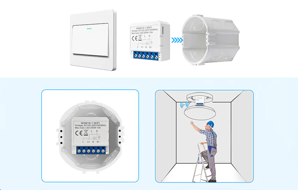 Dzięki kompaktowej konstrukcji model WSM16-W2 jest kompatybilny z różnymi rodzajami przełączników i pasuje do nawet 95% puszek instalacyjnych dostępnych na rynku. Możesz też przymocować go do lampy. Jego montaż nie sprawi Ci żadnego problemu ani nie zajmie zbyt wiele czasu. Co więcej, istnieje możliwość wykorzystania 2 przełączników do obsługi jednej lampy – takie rozwiązanie sprawdzi się na przykład w pobliżu schodów. Dzięki temu wygodnie zapalisz światło na parterze, a zgasisz je po wejściu na piętro!