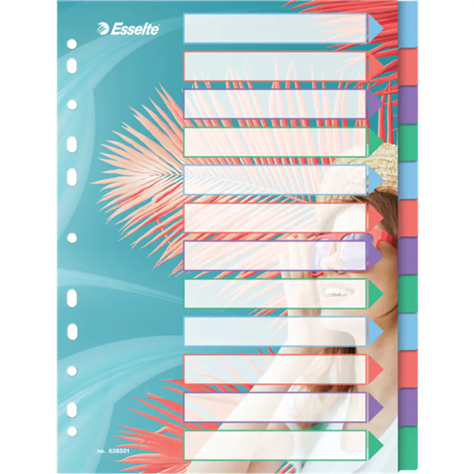 Mocne i wytrzymale przekladki Esselte Colour'Breeze A4 z indeksami, do porządkowania dokumentów w segregatorach z mechanizmem dLwigniowym oraz ringowych.