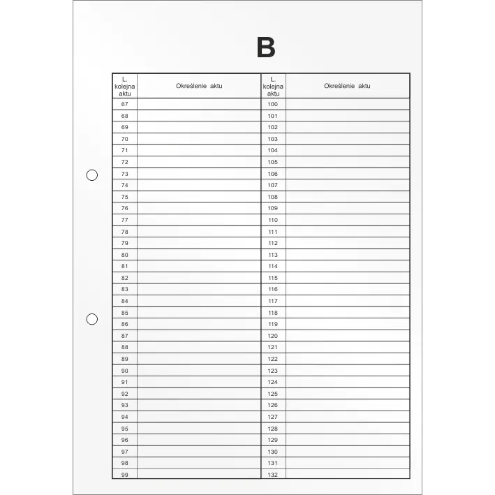 Uniwersalny wklad papierowy posiadający dwa otwory do wpinania do skoroszytów, segregatorów i teczek do akt osobowych na 2 ringi.