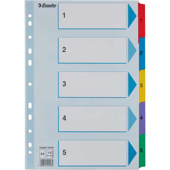 Przekladki kartonowe do segregatora A4 1-5 kolorowe ESSELTE