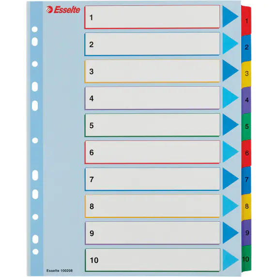Przekladki kartonowe na segregator A4+ 1-10 kolorowe ESSELTE