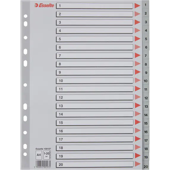 Przekladki plastikowe numeryczne z PP A4 1-20 szare 100107 ESSELTE