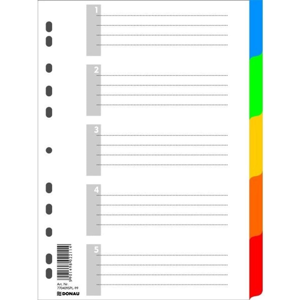 Przekładki PP Donau A4 5 kolorów