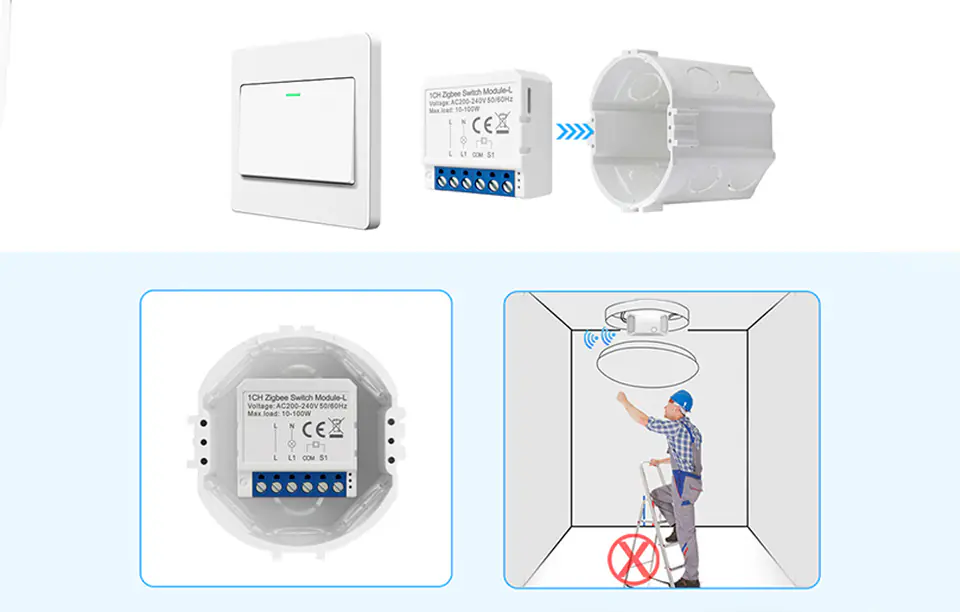 Dzięki kompaktowej konstrukcji model LZWSM16-W2 jest kompatybilny z różnymi rodzajami przełączników i pasuje do nawet 95% puszek instalacyjnych dostępnych na rynku. Możesz też przymocować go do lampy. Jego montaż nie sprawi Ci żadnego problemu i nie wymaga przewodu neutralnego. Co więcej, istnieje możliwość wykorzystania 2 przełączników do obsługi jednej lampy – takie rozwiązanie sprawdzi się na przykład w pobliżu schodów. Dzięki temu wygodnie zapalisz światło na parterze, a zgasisz je po wejściu na piętro!
