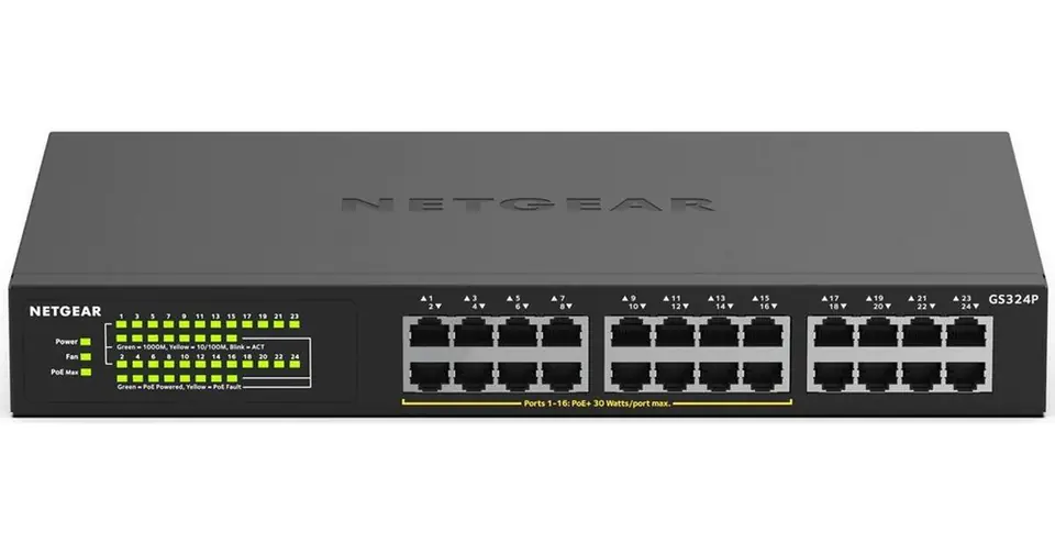 24-PORTOWY NIEZARZĄDZANY PRZEŁĄCZNIK POE+ GIGABIT ETHERNET (GS324P)Niezarządzane przełączniki Ethernet SOHO zapewniają proste i niedrogie możliwości nawiązywania połączenia sieciowego w małych firmach, w domach i biurach. Są one proste w użyciu, niezawodne oraz wytrzymałe dzięki metalowym obudowom. Obsługa portów Power-over-Ethernet (PoE) umożliwia również zasilanie i przesyłanie danych za pomocą jednego kabla sieci Ethernet CAT-5 dla urządzeń takich jak kamery IP, telefony VoIP, bezprzewodowe punkty dostępu i nie tylko. Dzięki przełącznikom Plug and Play możesz szybko i łatwo rozbudować swoją sieć na wiele urządzeń, bez konieczności przeprowadzania konfiguracji. Są dostępne z liczbą portów od 5 do 48 i obsługują technologie energooszczędne, dzięki czemu pozwalają oszczędzić prąd i pieniądze.