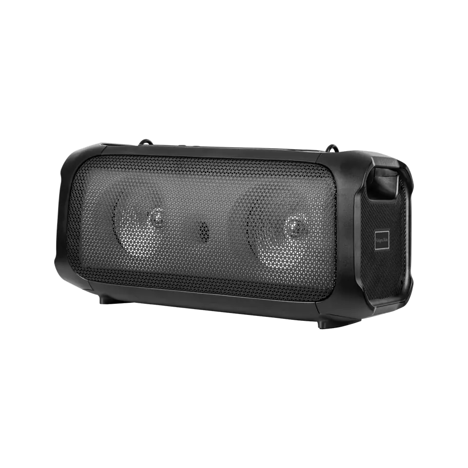 Moc: 30 WImpedancja: 6 OhmPasmo przenoszenia: 50 Hz ~ 20 kHzStosunek S/N: >85 dBGłośnik: 2 x 6,5" + 1,5"Częstotliwość FM: 87,5 – 108 MHzBluetooth: 5.0Obsługiwane formaty: MP3Funkcja TWS (połącz ze sobą dwa głośniki)Panel sterowania z efektami dźwiękowymiFunkcja X-BASSWejścia/wyjścia:Port USB 2.01 x wejście mikrofonowe (Jack 6,3 mm)Wejście AUX (Jack 3,5 mm)Gniazdo micro USBGniazdo micro SDZasilanie: 9 V / 1,5 AAkumulator: 7,4 V / 3600 mAh------------Wymiary: 470 x 225 x 240 mmWaga: 4,7 kg