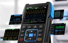 Wyświetlacz o przekątnej 2,8″ i rozdzielczości 320×240 px prezentuje przebiegi w pełnym kolorze z funkcją „infinite afterglow” (utrwalania śladu sygnału na ekranie, nawet po jego zaniku), utrzymując ślad fali na ekranie. Tryby Y–T, Rolling i X–Y (tzw. figury Lissajous do analizy różnic fazowych między sygnałami) ułatwiają obserwację zależności fazowych, a wysoka jasność gwarantuje czytelność w każdych warunkach. Wbudowany multimetr o rozdzielczości do 19999 pozwala mierzyć DC/AC, niskie i wysokie prądy, rezystancję, pojemność, diody, temperaturę oraz ciągłość (buzzer). Inteligentne zabezpieczenia chronią użytkownika i sprzęt przed przeciążeniem.
