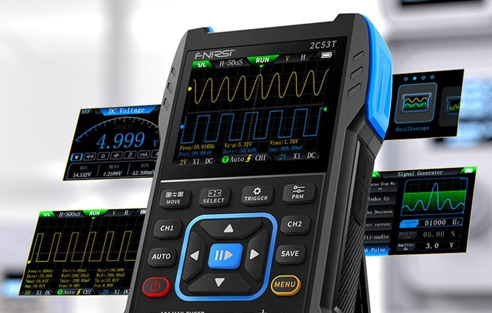 - Przenośny oscyloskop 3w1 FNIRSI 2C53T